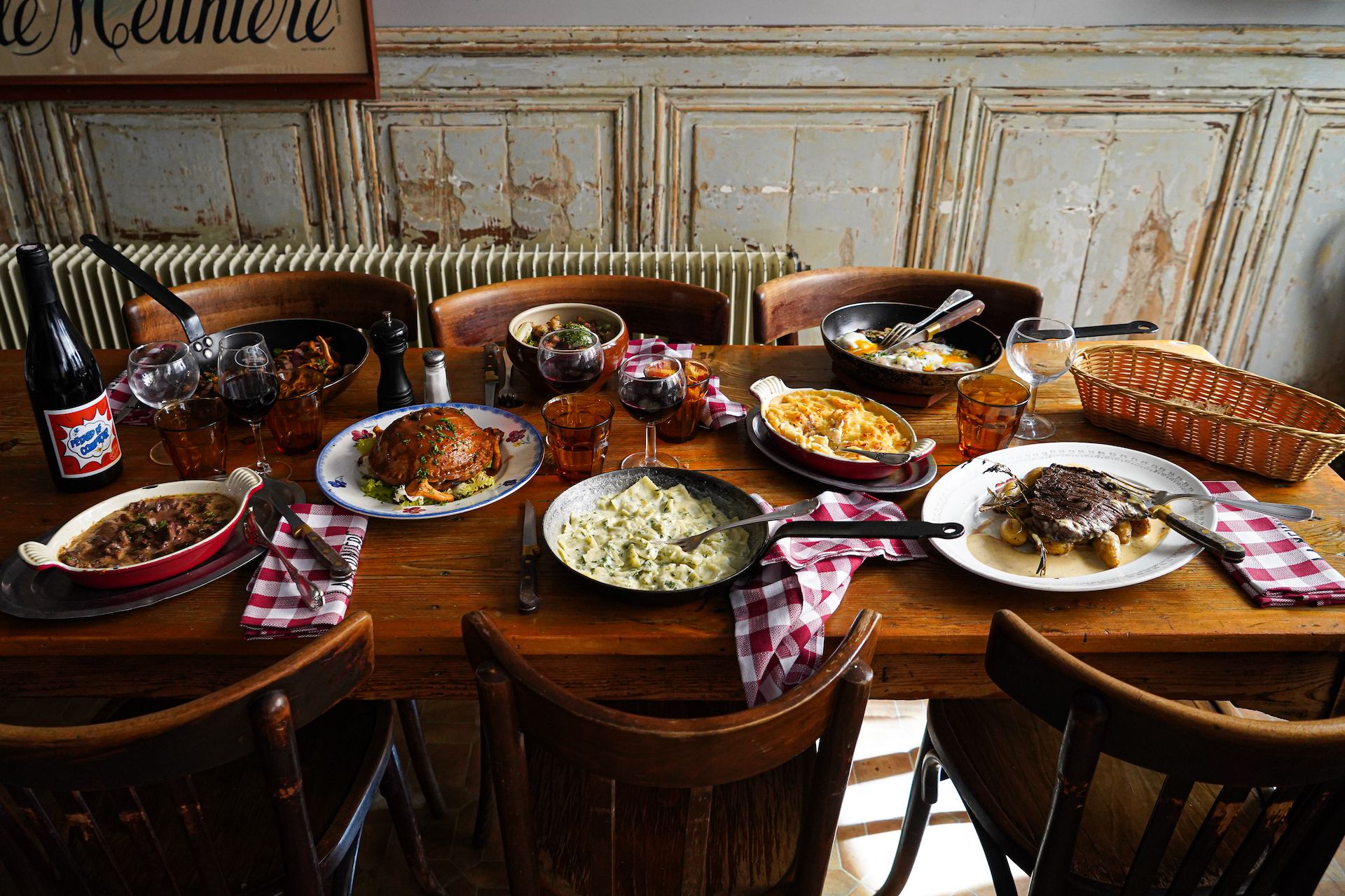 ° A heaping dose of soulfulness. Well-seasoned vinaigrettes, rich jus de viande, top-notch cuts of meat, freshly-made golden croutons, plump baba au rhum and heavenly pink praline desserts, or nothing at all!