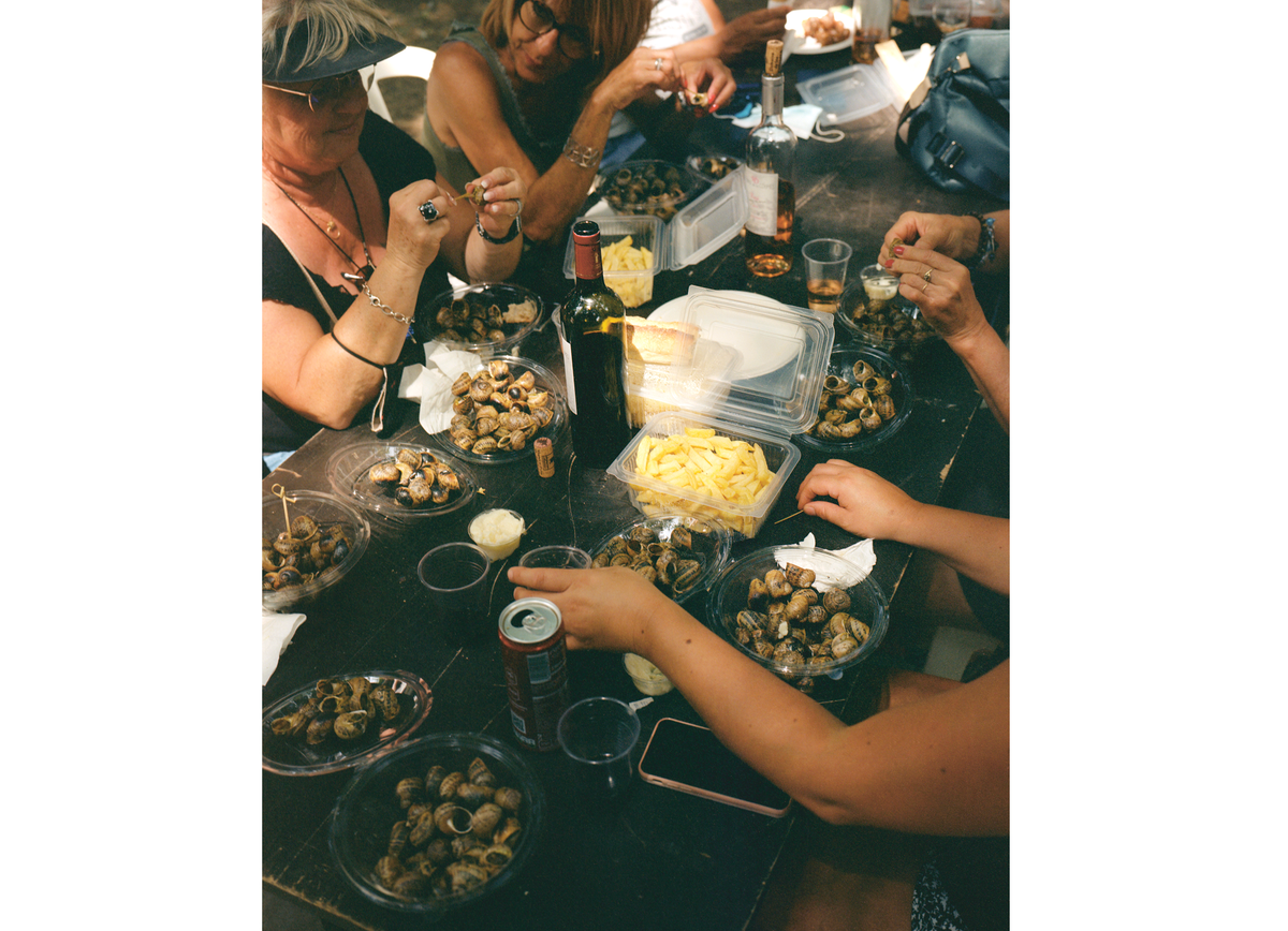 « La cargolade, c’est un repas de paysan, un plat du pauvre, parce que quand on n’a rien sous la main et qu’il y a des escargots partout, il suffit d’en ramasser pour casser la croûte. C’est notre protéine depuis toujours », explique Pedro Gil, 62 ans. Son asso, la Team Cargols, organise chaque année au lac du Soler le mondial de cette spécialité glorifiée en Catalogne et dans les Pyrénées-Orientales, indissociable d’un ustensile de cuisson – une grille posée à même la braise. Un plat popu souvent imité, jamais égalé, que l’on doit à une fameuse famille gitane de Perpignan : « Son inventeur a trouvé une façon de tourner des fils de fer ensemble pour les attacher en spirale. C’est le format parfait. On pouvait en acheter sur le marché il y a déjà quatre générations, alors je peux vous dire que pour les familles de la région, ce sont eux les fournisseurs officiels ! Tout le monde reste debout autour de la grille et on mange les escargots avec une tartine de pain, de l’aïoli et du vin rouge dans un porró. C’est ça, la cargolade ! »
