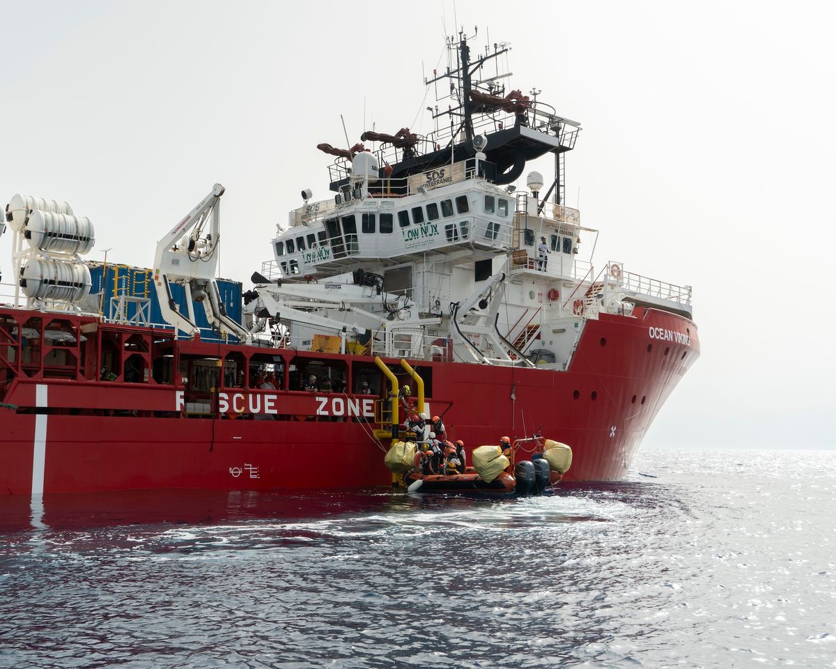 « Ok, toi, tu as l’air fort, aide-moi à coller mon bateau contre le tien », intime Charlie, le chef de cette mission de secours, à l’un des naufragés, désormais vêtu d’un gilet de sauvetage orange vif. Un par un, les hommes quittent leur cercueil flottant pour monter à bord de deux speed boats déployés par l’ONG SOS Méditerranée depuis l’Ocean Viking, son bateau-ambulance.