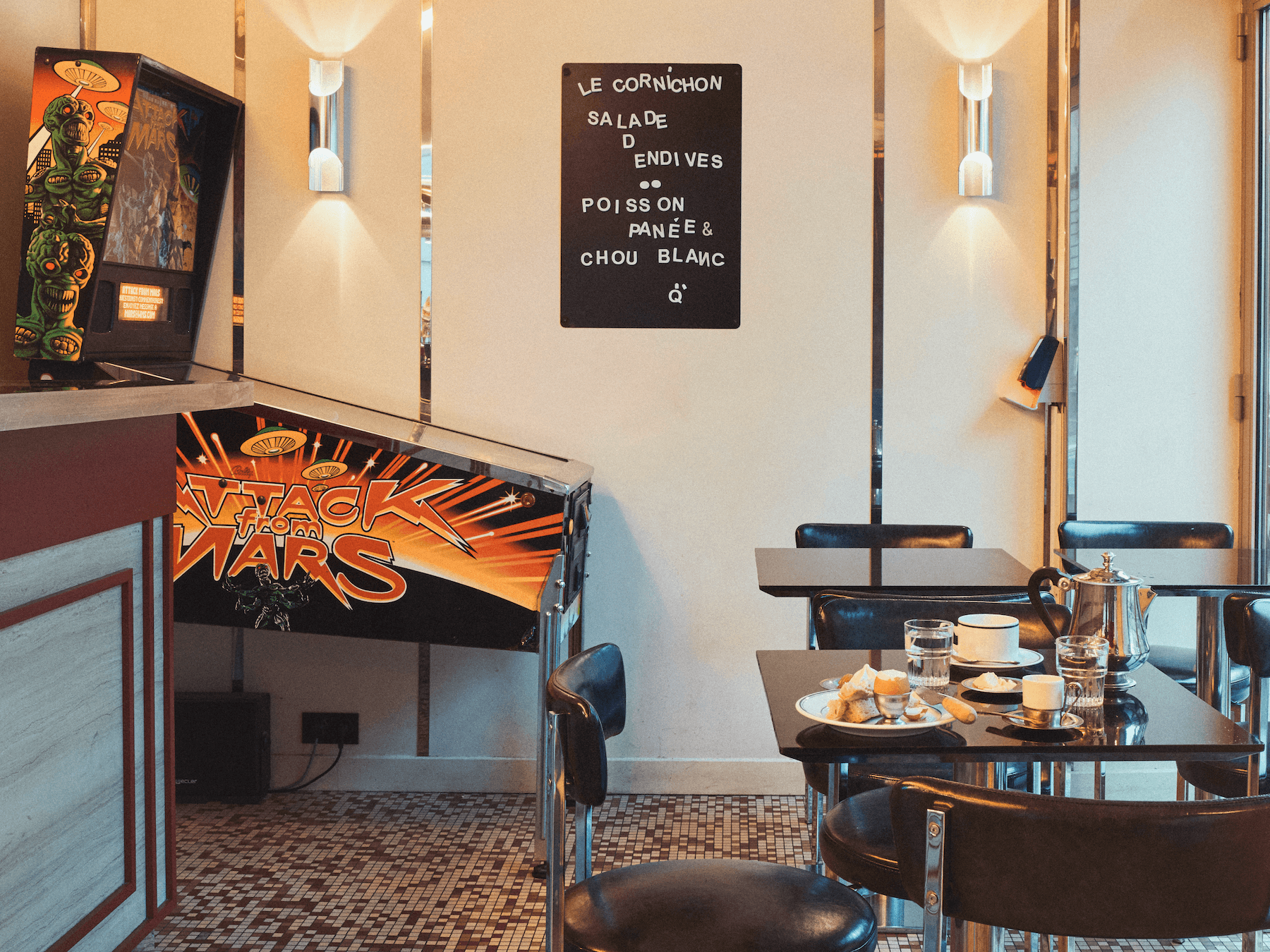 « On ne veut pas passer pour un énième concept », prévient Bertrand Chauveau, pas vraiment fan de l’expression « néocafé » qu’on lui glisse. « On veut juste vivre avec notre temps. » Ce qui implique, pour le taulier, « le fait d’accepter qu’à notre époque, de plus en plus de gens bossent à distance, et ont donc besoin de pouvoir sortir leur ordi et rester longtemps quelque part » – là où un coffee shop sur deux affiche désormais un « no laptop » assumé. Les associés ont donc demandé à leurs architectes de « placer des prises partout dans le resto (…) On a mis un wifi pour le staff et un autre pour les clients. La CB, on l’accepte même pour un unique café. En 2025, tout le monde fait tout avec son téléphone portable, plus personne n’a de monnaie. Ce serait réac de ne pas le prendre en compte », détaille-t-il à la pause, debout devant le bistrot ouvert sept jours sur sept.