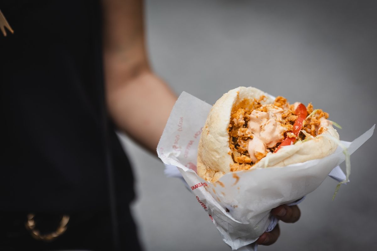 Quel rôle un festival peut-il jouer dans le développement d’un territoire ? C’est la question qui sert de boussole au pluridisciplinaire Horst à Vilvorde, depuis sa création en 2014. Pour le coorganisateur Toon Timmerman, l’alimentation est l’une des réponses : « On a rapidement eu envie de penser la nourriture comme une façon de rassembler les gens. On a été l’un des premiers événements belges du genre à organiser d’énormes brunchs sur le site du camping, alimentés par des amis du festival, qui sont aussi des habitants du coin. Cet exemple cristallise bien notre volonté de créer du lien autour de la food. » Au menu de Horst, pas de bidoche en sauce qui requinque grossièrement en quelques claquements de mâchoire, mais plutôt « une cuisine traditionnelle et exclusivement végétarienne, avec un petit twist qui rend l’expérience plaisante », expose Toon. La proposition est celle de Guzman, une cantine du centre-ville de Vilvorde : « Du mac and cheese pour la gueule de bois, mais aussi des plats plus équilibrés, comme les bowls végétariens, qui ont leur petit succès. » Le meilleur des deux mondes, comme dirait la philosophe Hannah Montana. « C’est important que l’aspect food soit géré par une équipe de Vilvorde pour stimuler la collaboration avec les organisations basées dans la région, mais aussi pour permettre à des locaux d’interagir avec des personnes d’un peu partout. » En dehors de Guzman, Toon peut aussi compter sur les établissements présents toute l’année à Asiat Park, le site du festival, qui accueillait autrefois une caserne ne devant pas connaître le café de spécialité. « Le torréfacteur MOK tient un stand de vins naturels en collaboration avec Nightshop (une cave à manger bruxelloise, ndlr), et le Bar Bâtard sert sa bière Sambucus et des pizzas au levain. » Une offre avant tout locale, donc, « comme la philosophie globale du festival », affirme-t-il fièrement.