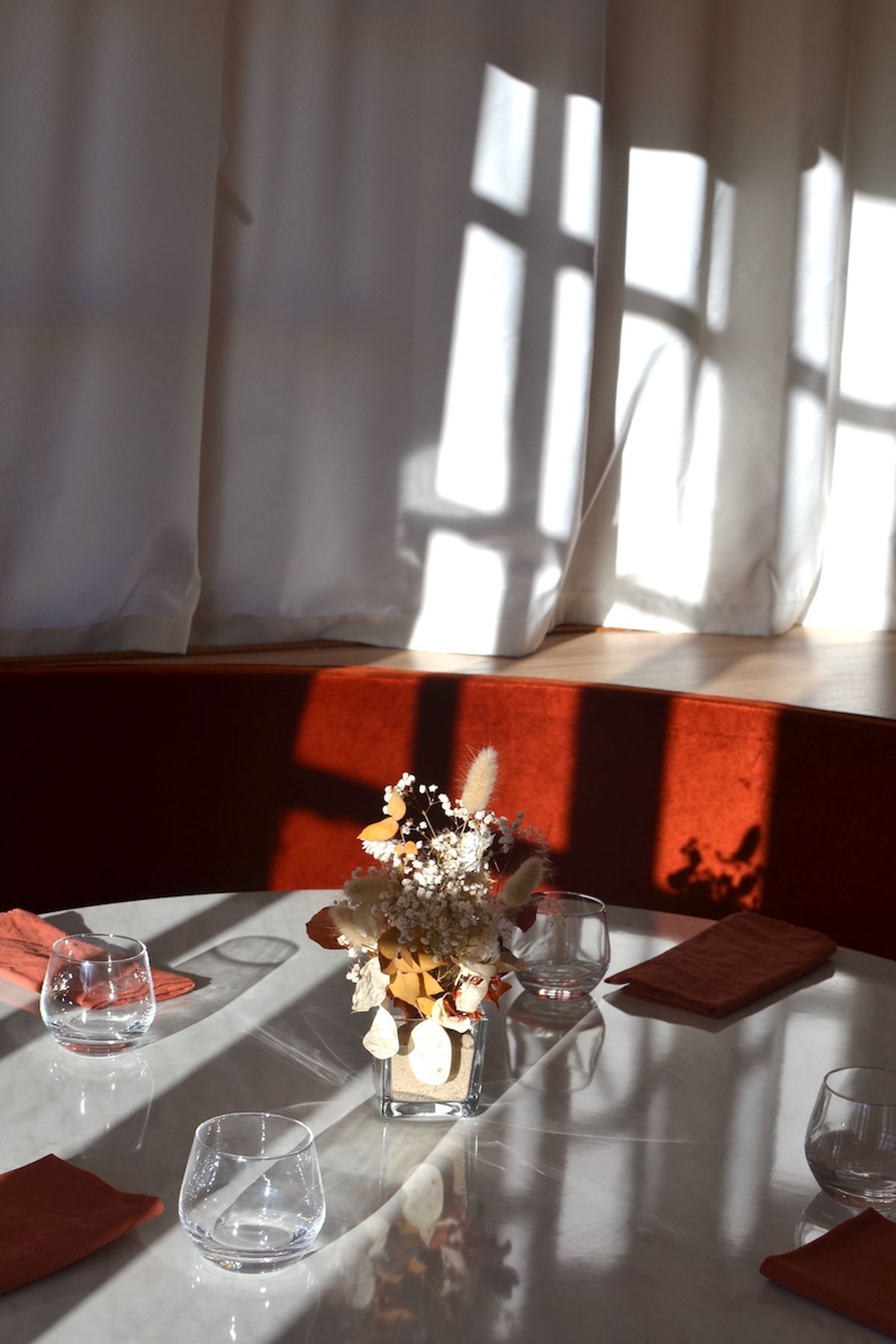 Fauteuils en velours orangé, tables boisées ou marbrées, fleurs séchées… Ce resto aux portes des calanques marseillaises ressemblerait à n’importe quel néobistrot de l’Hexagone si, le jour de leur réservation venu, les client·e·s ne devaient pas se délester de leur portable à l’entrée. L’unique hot spot déconnecté du pays ? Un projet siglé « SAS », plutôt : la zone tampon qui forme le trait d’union entre deux réalités, mais aussi l’acronyme de « structure d’accompagnement vers la sortie », dont est issu le premier restaurant d’insertion en milieu carcéral de France – Les Beaux Mets. Ou quand réparer les vivants signifie aussi nourrir les autres.