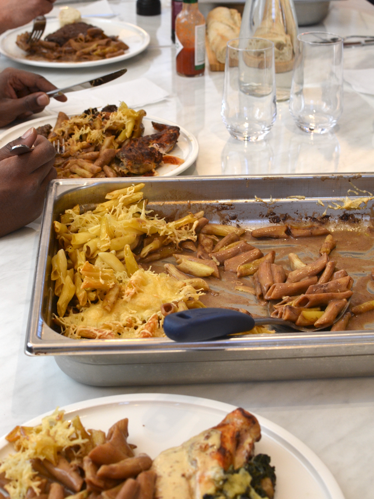 Aux Baumettes aussi, on continue de ressentir dans les corps la privation de liberté et ses contraintes, comme l’explique Marek, cuisinier au visage émacié et au regard fuyant, à l’heure de la pause clope. « Je ne devais pas venir travailler ce matin, je suis malade à cause du mistral qui traverse les couloirs gelés qu’on doit emprunter pour aller aux douches communes. » Pas beaucoup mieux dans les assiettes : « Je ne touche pas à la gamelle. Vous voyez les repas d’hôpital ? C’est encore pire. » Au mieux, les plateaux-repas servent de base pour cuisiner avec les produits cantinés – « là où les détenus achètent leurs produits de base, à partir d’un catalogue : farine, beurre, fromage râpé, mais aussi cigarettes et produits d’hygiène », explique un responsable technique. Sorti tout récemment, l’essai de Lucie Inland, Surveiller et Nourrir, établit que la punition passe aussi par la manière dont les détenus sont nourris.
