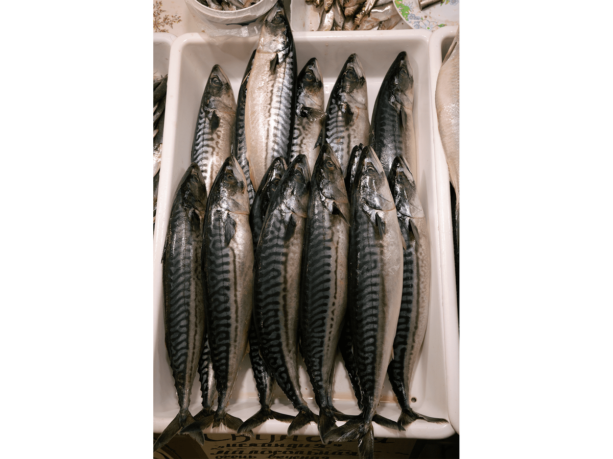 Verrouillé par des checkpoints, le front de mer est inaccessible, bien que tout proche. Pour le voir, il faut grimper au sommet de l’un des buildings qui longent la côte. Ce jour-là, il est pourtant impossible de distinguer exactement où l’eau s’arrête et où les nuages commencent – il y a seulement du gris et du gris. Il faut attendre l’arrivée d’un bateau de patrouille militaire pour comprendre que la mer est bien la mer. Les pêcheur·se·s n’ont pas le droit de sortir depuis bientôt un an en raison du danger posé par les mines sous-marines. Au marché couvert d’Odessa, le frais a été remplacé par le congelé et l’importé. « Ni poissons, ni clients » se désole Alla, une vendeuse équipée d’un tablier bleu et de gants en plastique noir. Il ne lui reste plus, pour se donner un peu de chance, qu’à chatouiller le nez de « tante Sonia », personnage du folklore dont la statue en bronze trône non loin de son comptoir. Quelques rares étals exhibent toutefois du turbot frais, forcément en provenance de la mer Noire. Certain·e·s pêcheur·se·s auraient-ils osé braver l’interdit ? « Pas de commentaire », répond sèchement une poissonnière. « C’est interdit d’en parler, vous n’avez pas besoin de savoir d’où ils proviennent. »