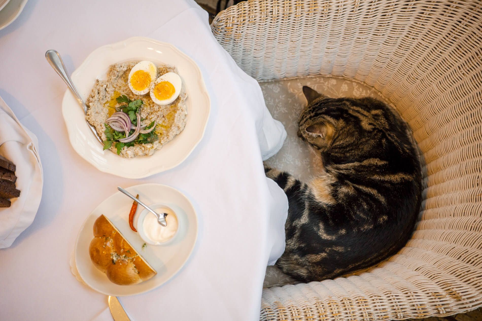 Il serait temps de passer au dessert, mais Alexander Kovolchuk insiste pour qu’on recommence depuis le début. Le début, c’est l’« avant-goût » ou forshmak, comme on le dit en yiddish. En l’occurrence, un tartare de hareng lié à la pomme verte et au beurre, et servi avec des herbes fraîches et un œuf mollet tranché en deux. Cette spécialité de la cuisine ashkénaze se tartine sur du pain de seigle noir grillé, et surtout (c’est le moment où Alexander se lève pour attraper des petits verres), se déguste avec de la vodka au raifort bien glacée. « Odessa est une ville portuaire et cosmopolite. Deux caractéristiques qui font que, selon moi, aucune autre ville ukrainienne n’a une culture culinaire aussi développée », estime ce trentenaire, employé du restaurant Dacha, où l’on met un point d’honneur à servir une cuisine traditionnelle dans des plats en porcelaine disposés sur une nappe blanche.