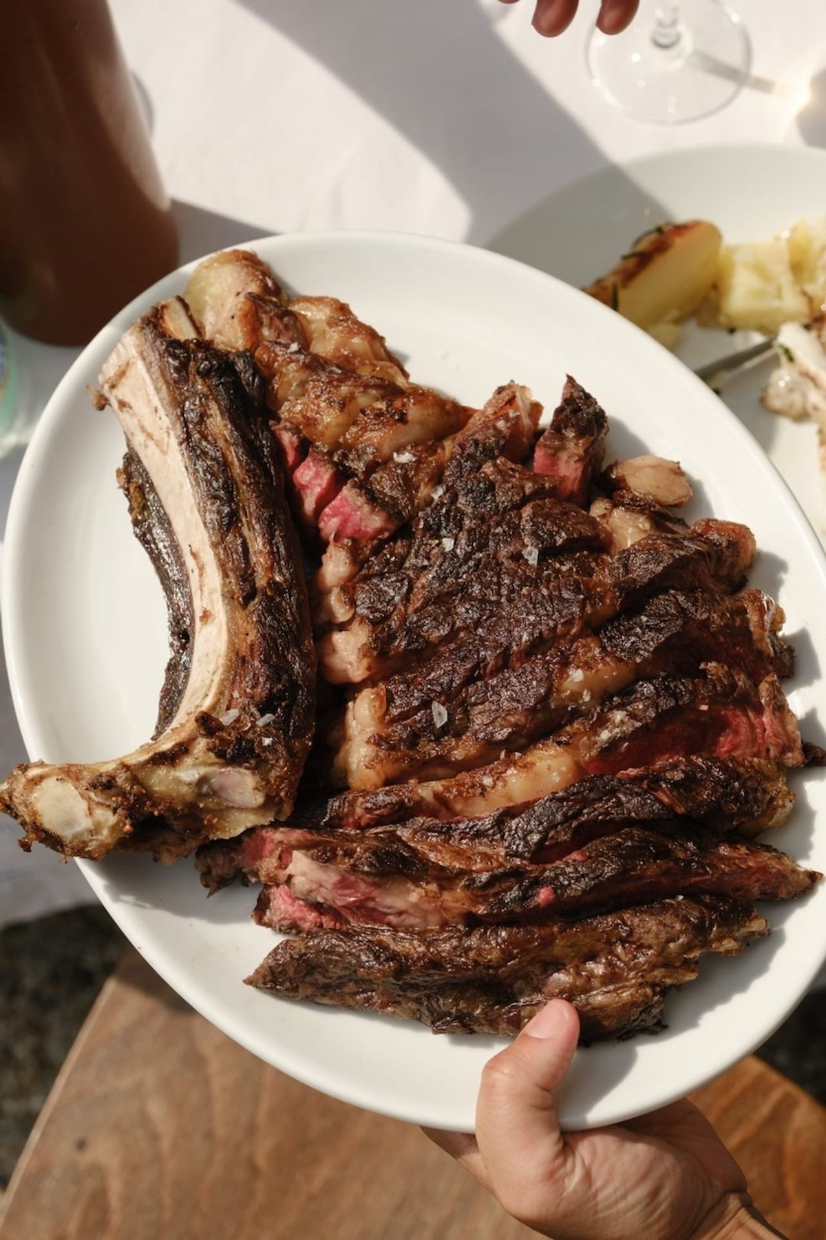 « En 2020, on avait prévu de fêter Noël en Angleterre, puisqu’Alex est anglais… Mais les frontières ont fermé à cause du Covid, et on s’est retrouvés à la dernière minute en tête-à-tête, dans un petit appartement à Paris, tout penauds de ne pas pouvoir partir. Pour se consoler, on s’est offert une bonne côte de bœuf avec des pommes de terre rôties. C’est marrant, mais aujourd’hui, la txuleta, qui veut dire “côte de bœuf” en basque, est l’un des plats qu’on vend le plus au restaurant. Et les gens viennent de loin pour en manger ! J’imagine qu’on n’est pas les seuls à trouver ça réconfortant… »