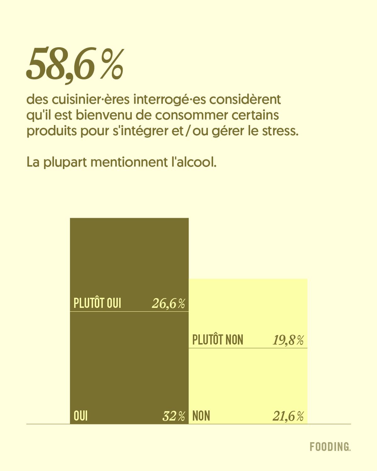 (4) Dans notre sondage, 62,6 % des cuisinier·ères déclarent ne pas manger ou se contenter de grignoter un peu pendant leur service. Ce chiffre passe à 78 % pour celles et ceux qui travaillent plus de 60 heures par semaine.