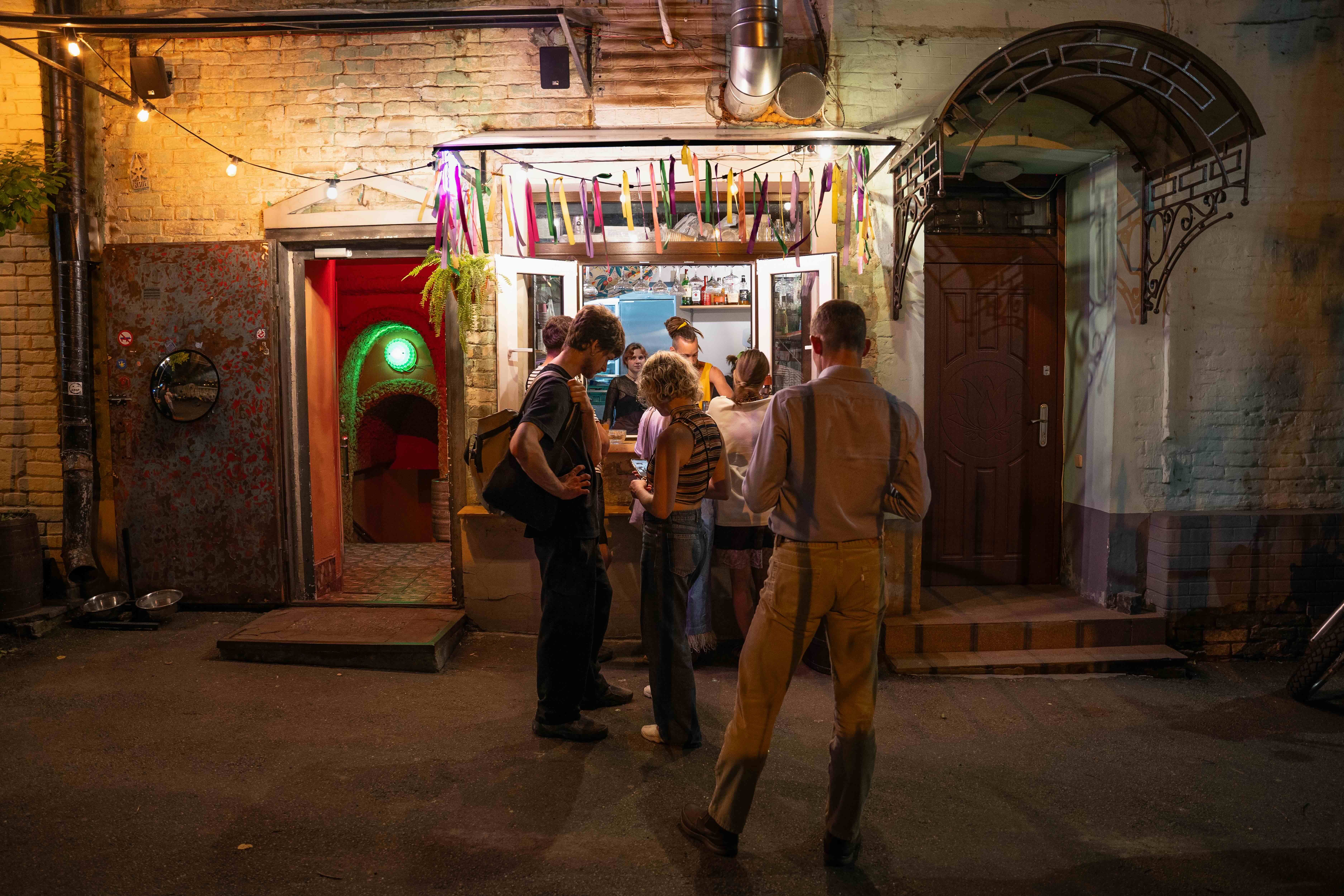 La réputation de la cuisine géorgienne n’est plus à faire. Dans la plupart des pays de l’ex-URSS, les khachapuri, chaussons de pain garnis de fromage, d’œuf ou de viande, et les khinkali, raviolis à la viande, sont très appréciés des Ukrainien·nes. On les retrouve chez Mama Manana, où la cuisine change du sempiternel bortsch. Les légumes en provenance de la mer Noire, aubergines et poivrons géants, passent tout seuls, accompagnés de tonis puri, un pain sans levain croustillant et au fromage et des pkhali aux épinards. Sur la table d’à côté, une brochette d’anciens mercenaires occidentaux tatoués engloutissent des khachapuri adjarian au poulet. En dessert ? Un excellent yaourt fermenté, appelé matsoni, au miel. Et pour faire chanter tout le monde, une riche carte des vins, de la vallée de Teliani aux caves de Tbilissi. Une adresse qui confirme la réputation gastronomique des Géorgien·nes et constitue une excellente entrée en matière avant une tournée des bars.