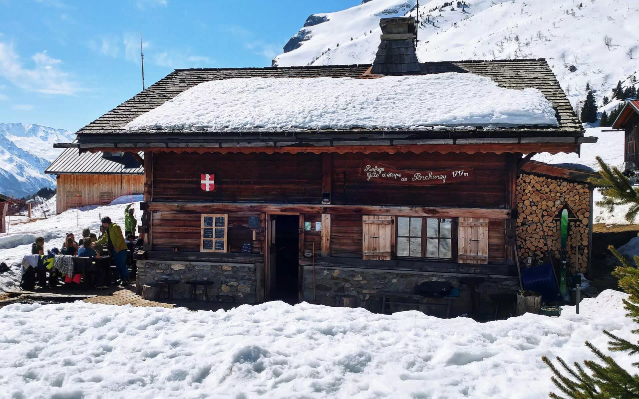 Les années passent, mais le discret Refuge de Porcherey reste LE meilleur plan du domaine Évasion Mont Blanc – accessible par la piste des Marmottes ou en raquettes depuis Saint-Nicolas-de-Véroce. En cause ? Le patron Hervé Jacquemoud, qui apaise les rideur·ses affamé·es avec des assiettes ficelées sans façons : pot-au-feu ; sauté de veau et gratin dauphinois ; cuisse de lapin et crozets aux petits légumes… Sans oublier les maousses tartes ménagères apprêtées sur le buffet !