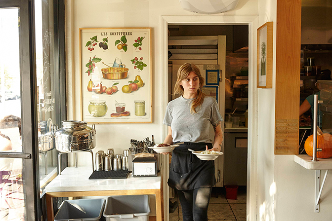 L’incontournable breakfast/brunch des hipsters de Silver Lake. Dans la petite cantine de Jessica Koslow (qui, à l’origine, ne vendait ici que ses pots de confiture), on commande au comptoir avant d’aller s’asseoir à l’un des guéridons posés sur le trottoir ombragé. Et de se faire du bien avec un Sorrel Pesto Rice Bowl (bol de riz complet au pesto d’oseille, citron confit, radis mandolinés, feta et œuf poché) ou un Ricotta Toast (épaisse tranche de brioche toastée tartinée de ricotta et de confiture maison au choix)… A humecter d’un café (Heart, Parlor Coffee, Ruby Roasters…) ou d’un Al Puccino (un cappuccino glacé), de thé, horchata, limonade à la rhubarbe ou jus frais. A partir de 11 heures, daily specials (tartine d’esturgeon fumé, céleri, roquette, aïoli au citron, vinaigrette au gingembre), sandwichs (poivron séché, ricotta maison, amandes effilées, légumes verts…) et salades avec options vegan et gluten free. Compter 15 $ (13 €). Sans réservation (beaucoup d’attente le week-end).
