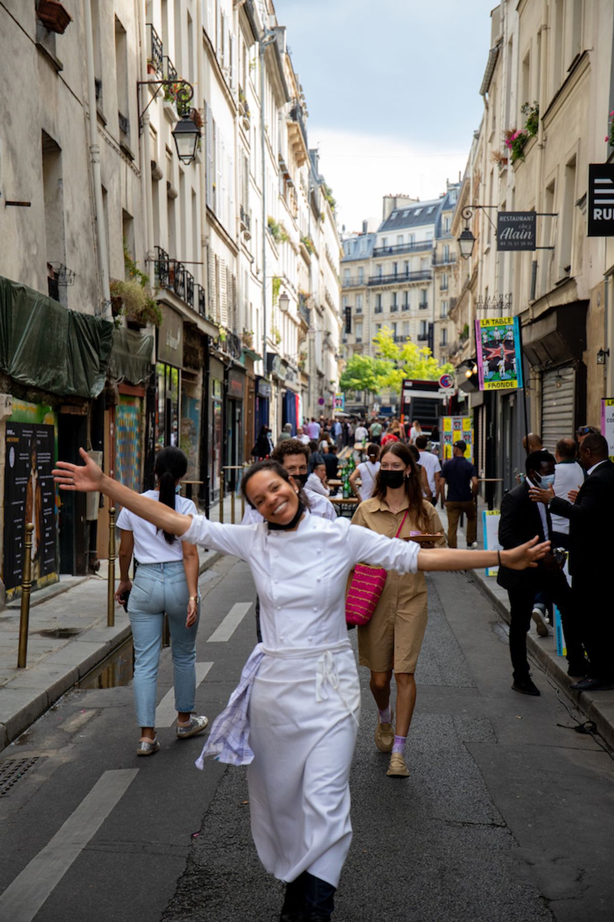 Un événement de haute volée qui s’est poursuivi avec une expérience en plusieurs services dans l’étonnant quartier libre du Vertbois, investi pour l’occasion par une sélection de projets joyeux et combattants – du néoresto à l’épicerie chérie : Alain Ducasse, Romain Meder et Marvic Medina (Sapid), Alessandra Montagne-Gomes (Nosso), Alexis Poirson, Marc Almeida et Thomas Crand (Superfrais), James Henry et Shaun Kelly (Le Doyenné), Robert Compagnon et Jessica Yang (Folderol, Rigmarole), Adrien Ferrand et Galien Emery (Brigade du Tigre), Antonin Bonnet (Boucherie Grégoire, Quinsou), Emmanuelle Marie (La Petite Laura), Lina Caschetto, Apollonia Poilâne, Hélène Darroze (Joìa, Marsan)…
