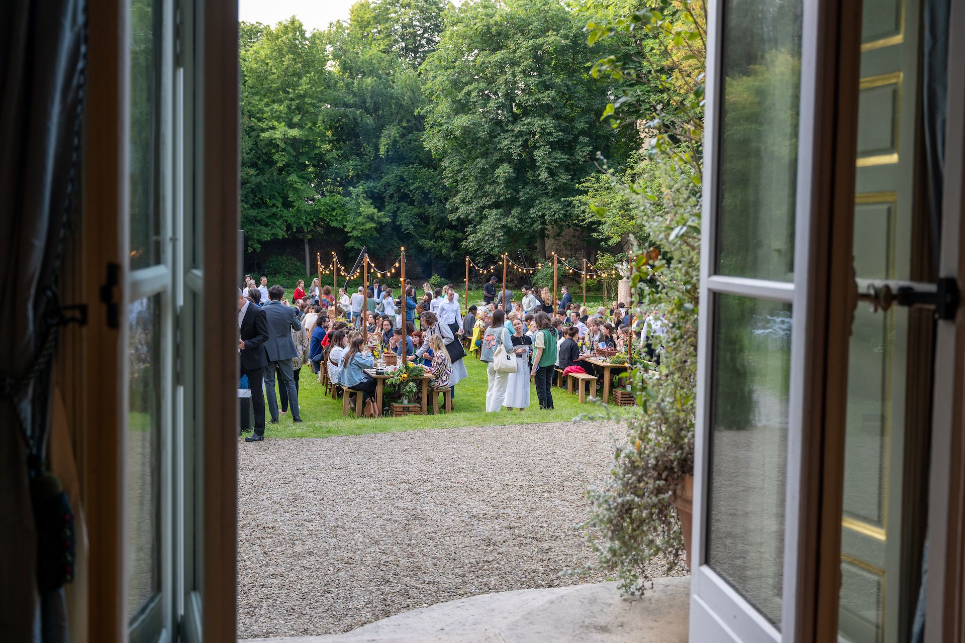 Sous le soleil couchant du 7e arrondissement, une flopée d’invité·es trié·es à quatre épingles ont partagé un apéro country chic concocté avec brio par Swiss Wine, accompagné de hot-dogs sandwichés entre les mains des bien nommées Éditions Délicieuses. Les festivités si bien commencées, places furent prises sur de grandes tables éclairées à la bougie, mises en musique par l’équipe du Macki Music Festival, pour picorer les assiettes dûment cuisinées par le chef du restaurant Gamper : caponata de fenouil aux câpres et raisins secs, filet de truite fumé au beurre monté et légumes d’été, fraises à la crème de chèvre et huile de verveine… sans oublier le Gruyère AOP, à dégouliner de plaisir ! En somme, une sacrée partie de campagne, ou l’avant-goût d’un bel été à la Maison Suisse…