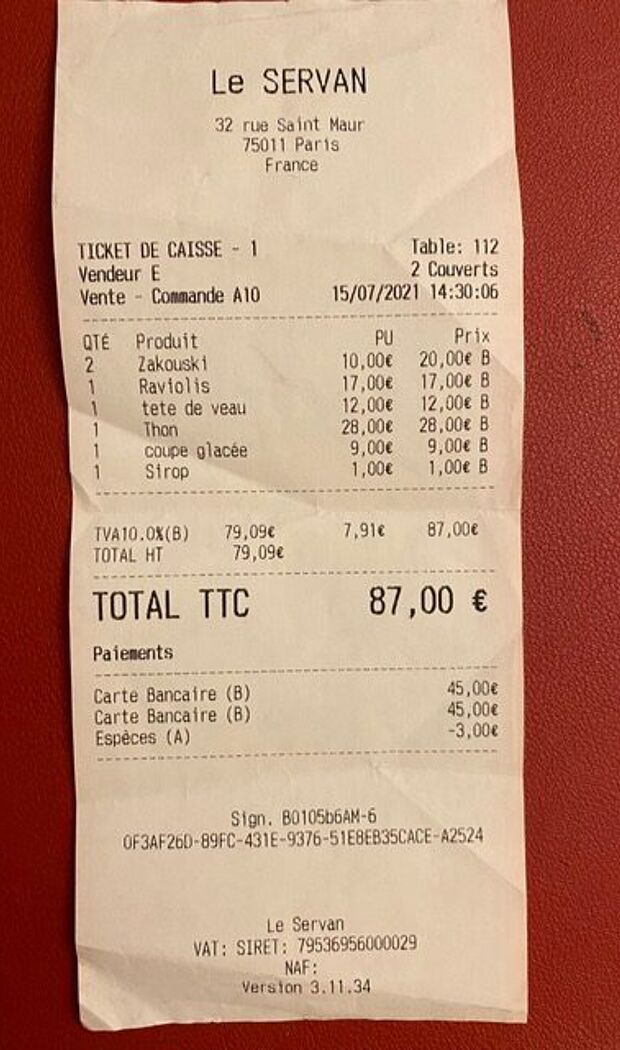 Voilà près de dix piges que les sœurs Levha (Tatiana au piano, Katia en salle) ont craqué la recette de la néobistrote parigote : zinc en laiton et faïence art-décorée, joli plafonnage gratté, service attentif mais point trop ampoulé et, surtout, cuisine française réformatrice sous influences. Fidèle au poste, Tatiana envoya ce soir-là : mythologiques wontons frits bourrés de boudin noir, à peindre d’une sirupeuse sauce sweet chili ; puis, aubergines à en crever, juste laquées au beurre noisette, cèpes, truffe et sauce au poivre ; et, enfin, mi-croustillant mi-rosé, patate, phric phao et burrata ont rejoué le péché capital à table… Au bout du comptoir, un craquage ? Une tradi tarte soufflée au chocolat, glace vanille ; un rébarbatif clafoutis aux fruits rouges, glace au miel… Et de notre côté, coup(e) de foudre pour la pêche Melba, sorbet framboise, meringue, arlettes et… chantilly si crapuleuse qu’on n’en redemande pas… · Lasri Racha