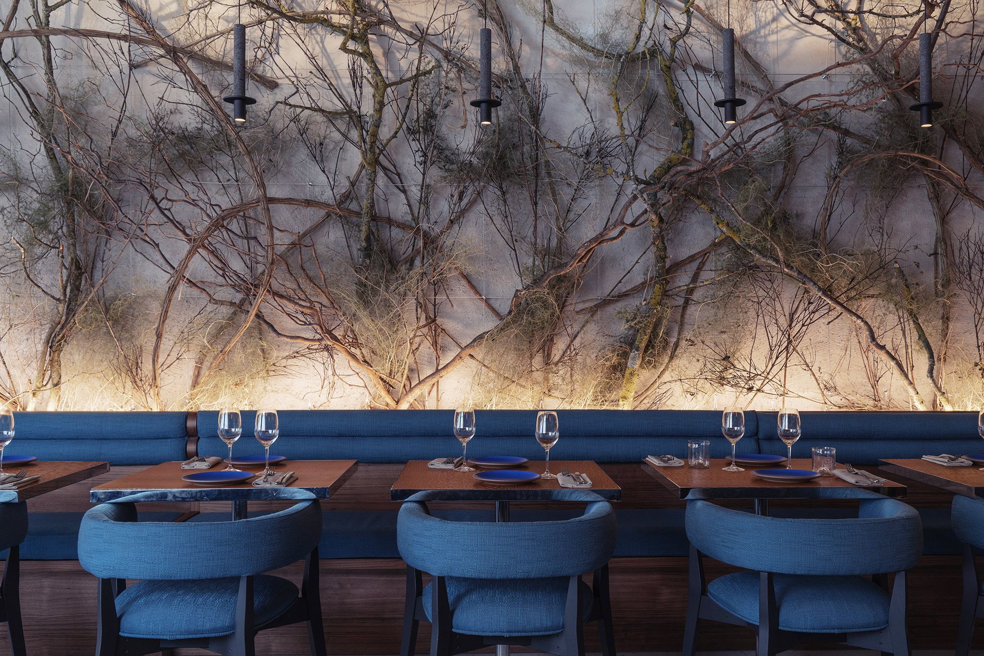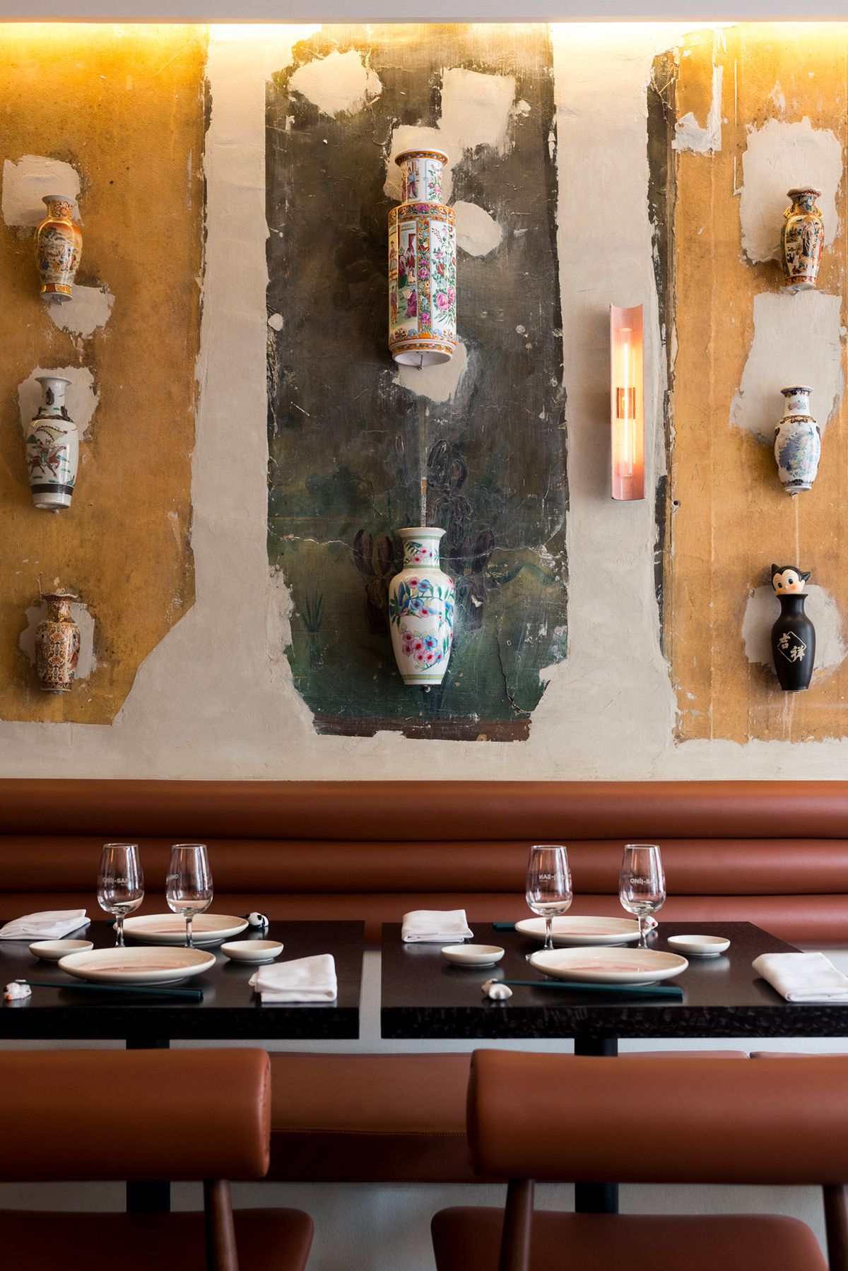 Quand j’imagine un restaurant, j’aime beaucoup échanger avec le chef. C’est une phase dont on ne parle pas assez, je trouve, malgré le rôle essentiel qu’elle joue dans la création du lieu, tant dans son aspect esthétique que pratique : comment optimiser l’espace pour les allées et venues des serveurs, comment donner à voir l’univers culinaire à travers des éléments décoratifs… Autant de problématiques auxquelles on tente d’apporter des réponses concrètes.
