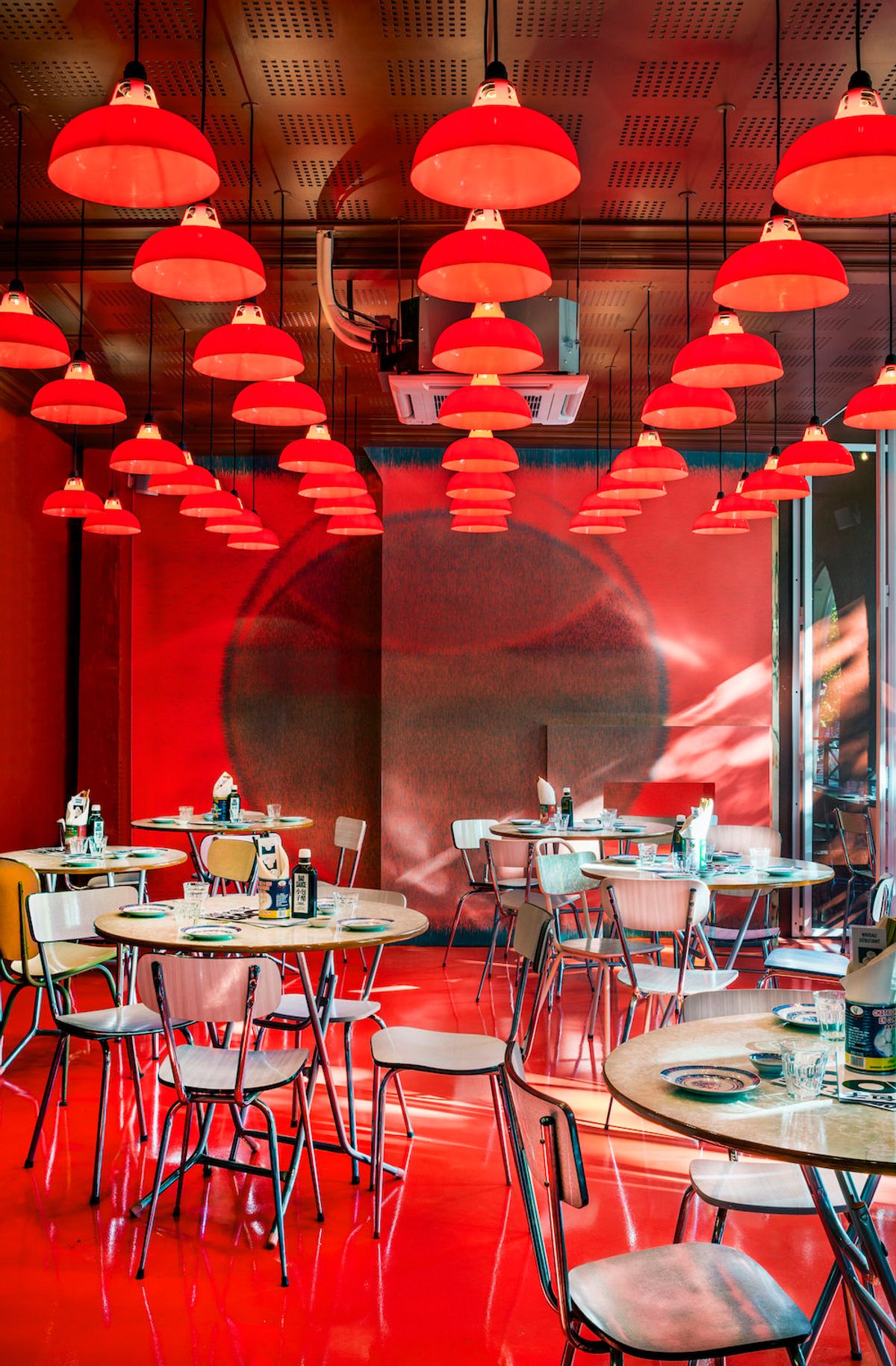 La surabondance de lampes est clairement le principe décoratif sur lequel nous nous sommes le plus amusés chez Gros Bao. On aime l’idée de détourner, démultiplier, sérialiser pour tendre vers un certain maniérisme. On n’a pas envie de se répéter, évidemment, mais on aime jouer avec des éléments « signatures » comme le miroir, le néon… On a une peur bleue du lisse, d’où cette inclination à explorer les textures, les effets de perspective et de lumière.